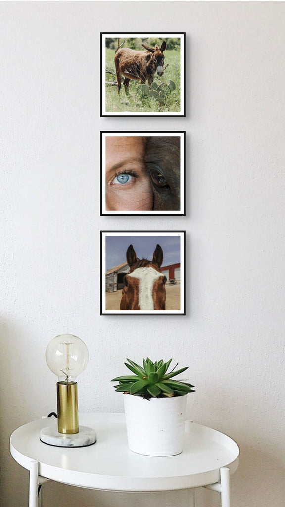 A set of three 7"x7" prints of your favorite Sweet Mercies Rescue Ranch images - Frank, Mariah and Ellie, and Benny Lou! They are printed on the same high-quality paper as the larger prints, just in a smaller size. Perfect for gift giving!